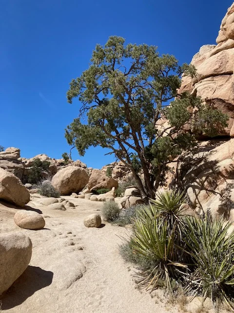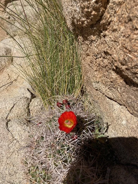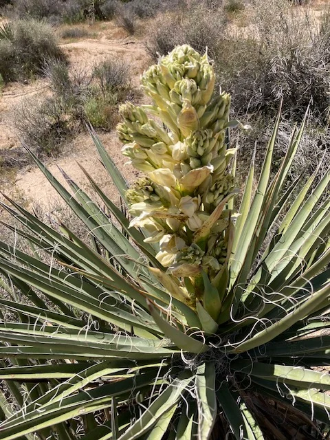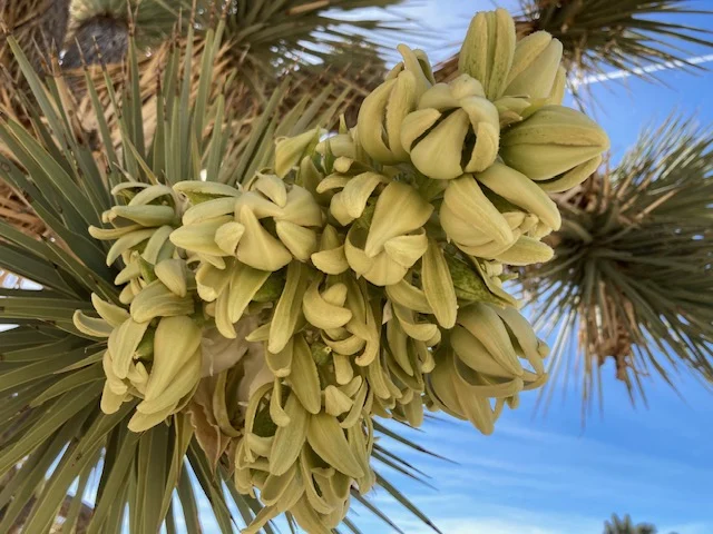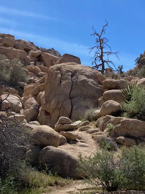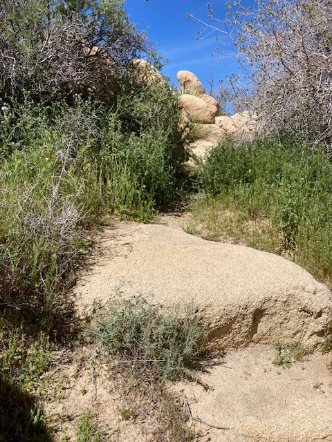 I did drive to, and hike, the actual “Hidden Valley”, with its wonderful walls of unique rock formations, yucca plants, trees and blossoms.