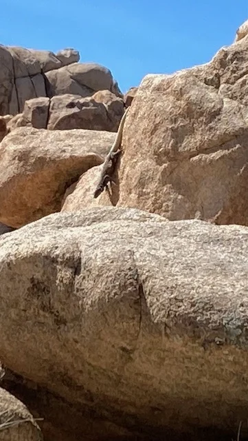 During the hike, I got pulled into a family for a while by a prankster who sneaked behind me to throw off his family that was a head of me on the trail. He wanted to see how long it would take for them to notice and started a conversation with me. I ended up walking with them for quite a while. I also had the opportunity to be still and watch a lizard with a couple of women. I’m not sure what type of lizard it was, but I think it was a chuckwalla. Its yellow tail was longer than its dark body.