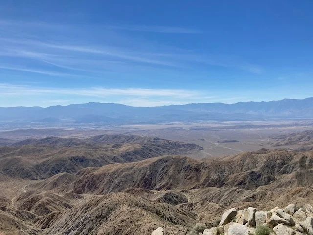 I drove up into the Little San Bernardino Mountains to Keys View, which over looked the San Andreas Fault and the Coachella Valley. The view was breath taking. Sitting on a bench, I absorbed the sun, the breeze, the view… Seemed like I was on the edge looking out over the world.