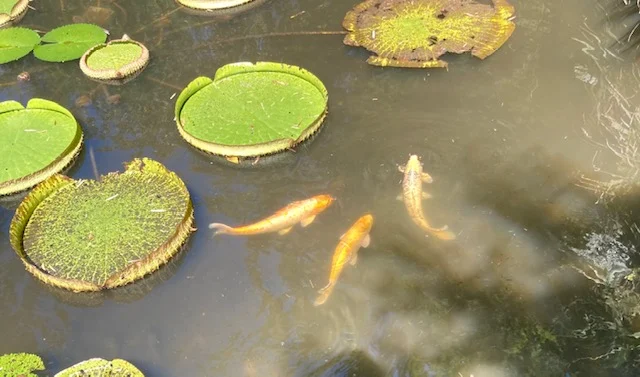 Wandering along the paths I passed bamboo forests, vine collections growing over arbors and pergolas, areas of pine cone ginger, a butterfly garden, a palm garden, and much more. I also spent a lot of time at the water elements, and it was fortunate that the giant Victoria water lilies were still there and hadn’t disappeared yet. I made it to the garden before the weather cooled off enough for them to disappear.